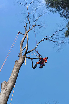 A:今後は特殊伐採の技術をしっかり磨き、「どんな木でも対応できます」と胸を張って言えるようになりたいと考えています。現在はまだ、「この木は自分には難しいかもしれない…」と悩む案件もあります。とくに枯れ木の場合、内部がどの程度傷んでいるのか判断が難しいこともあります。伐採の技術は本数よりも、どれだけいろんな状況を経験してきたかが物を言う世界です。これからも場数を踏み、判断力も技術も経験も積み重ねていきたいと思っています。